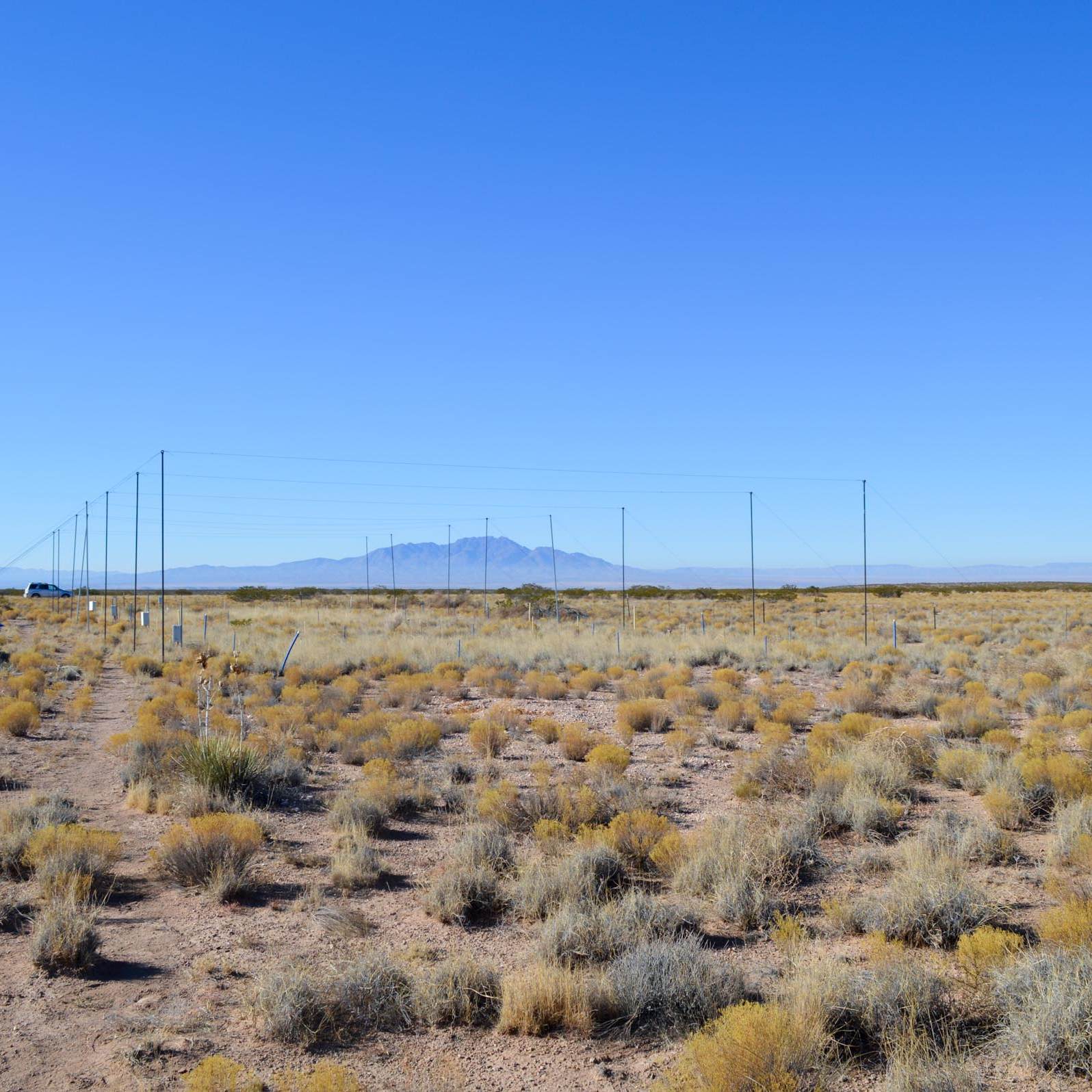 We manipulate rainfall event size and frequency using a fully randomized design with a total of thirteen 8 m x 13 m plots. Control plots (n=3) receive ambient precipitation. Two rainfall treatments (n=5) are applied each year during the monsoon. The Few-Large treatment receives ambient rainfall plus one 20 mm rain event each month (i.e., increased rainfall event size). The Many-Small treatment receives ambient rainfall plus four 5 mm rain events each month (i.e., increased rainfall event frequency). Thus, we add the same amount of rain over the monsoon season (60 mm), but we vary the size and frequency of applied precipitation events, increasing variability without imposing unrealistically extreme rainfall amounts. The overall precipitation added per monsoon season is equivalent to an increase of ~40% over an average year (long-term monsoon mean ~150 mm). The 20 mm events simulate more extreme precipitation events, and the 5 mm events represent modal precipitation event size. On average, 70% of natural precipitation events are <5 mm and 12% are between 10 – 20 mm (1988–2008). On August 4, 2009, a lightning-initiated fire began on the Sevilleta National Wildlife Refuge near MRME. The experimental site was entirely burned on this date, with all plots subjected to high intensity wildfire.