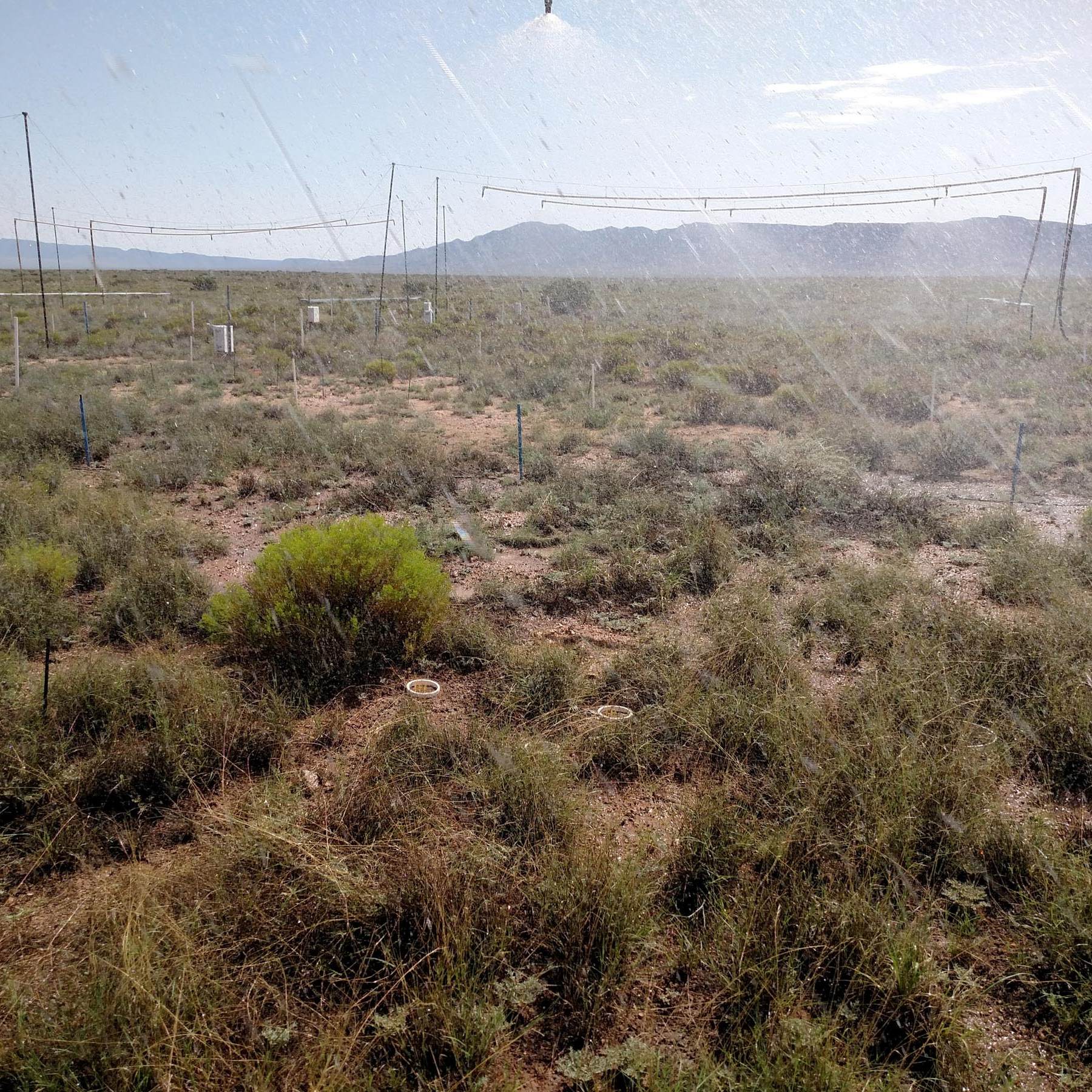 The monsoon rainfall manipulation experiment (MRME) addresses the impacts of increased precipitation variability on the potential for plant community reordering in Chihuahuan Desert grassland by shrub encroachment. The overarching question is, How does the size and frequency of rain events affect post-fire ecosystem processes and the potential for shrub encroachment into grassland? MRME started in 2006 with Univ of New Mexico start-up funds to Collins, and is now supported by NSF LTREB and LTER.